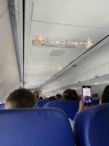 さて、そろそろSan Diegoに着こうかという頃、一人の女性が前方のCAの元へ行き、何やら話を始めました。