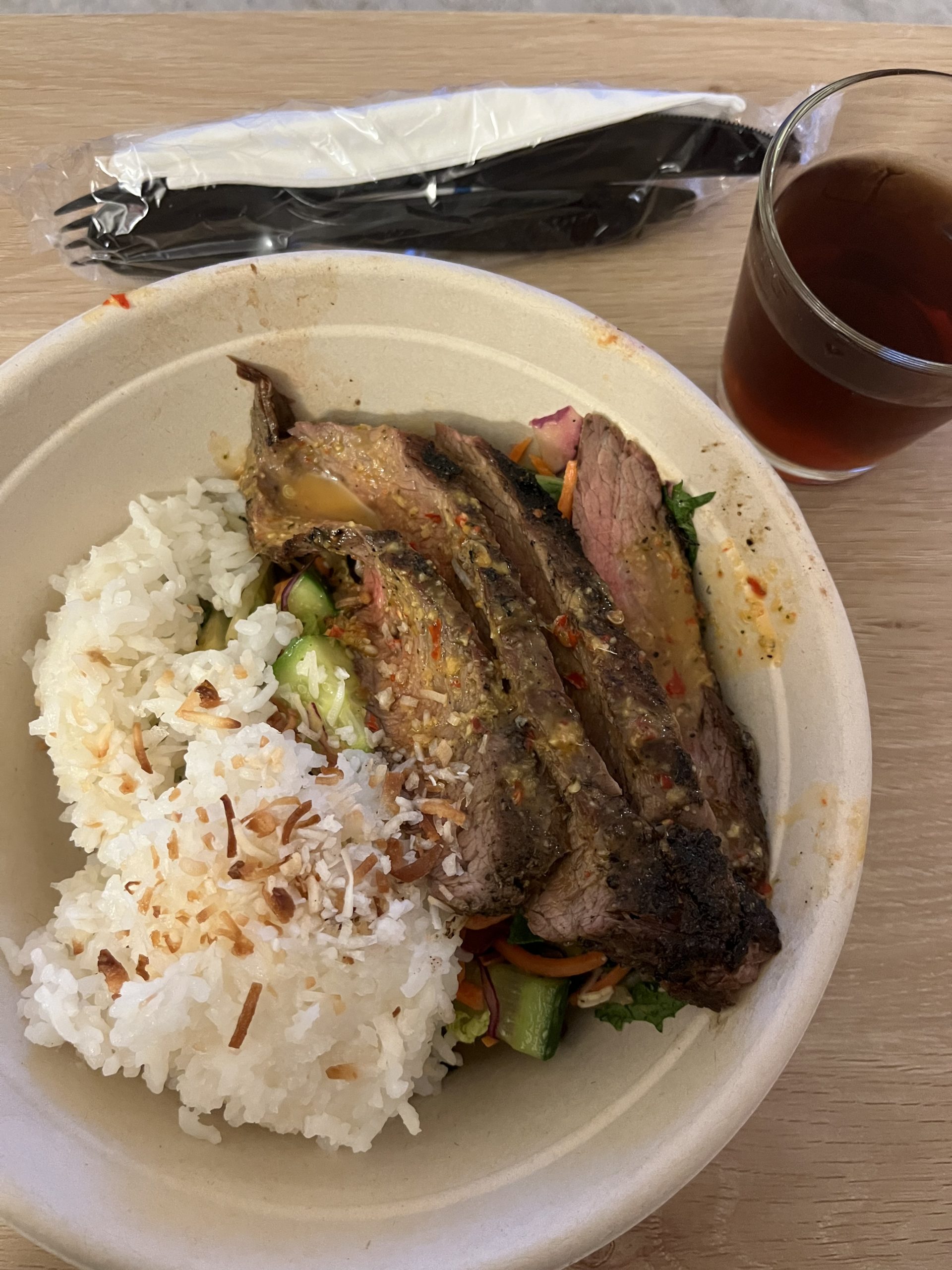 いつもならお水でいいや、となるところだが、一緒に行ったお友達はおしゃれなリンゴジュースやらレモネードやらを注文しているので、私もソーダ2.5ドル(337円)をつけてみた。