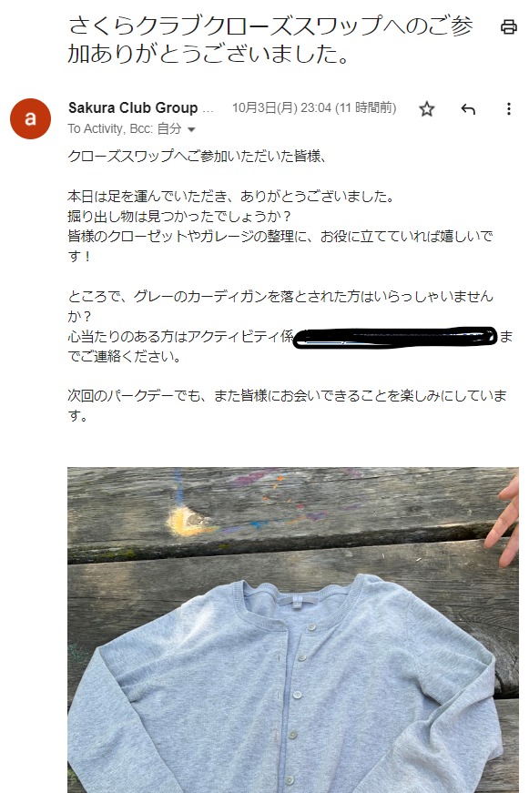 さてその日の夜、今日参加したさくらクラブから、参加御礼のメールがメーリングリストで流れてきていた。