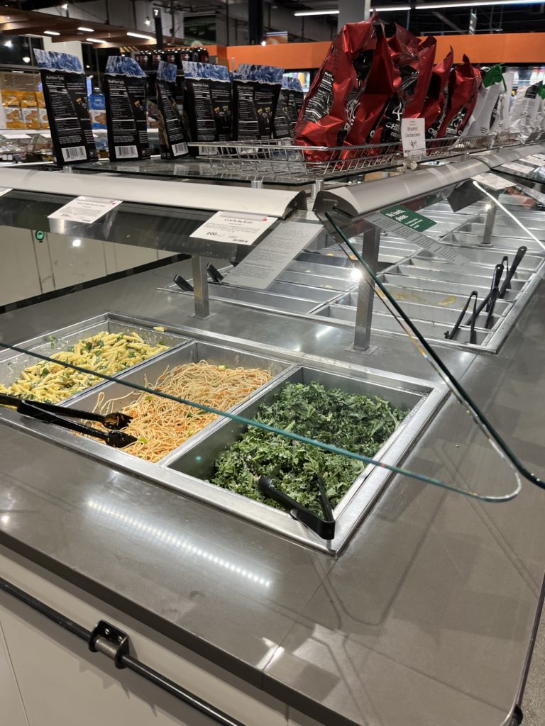 こちらは量り売りのホットミール(惣菜)やサラダバーのコーナー。