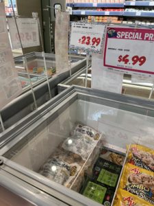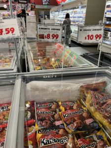 冷凍たこ焼き45個入り約24ドル(3240円)。屋台のタコ焼きより高いんでないだろうか。日本に帰ったらタコ焼きを食べるぞ。