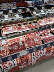 日系スーパーだけあって薄切り肉がたくさん。しゃぶしゃぶ用と書かれた牛肉は12ドル/ポンド(360円/100g)くらい。今日気が付いたが、けっこうお買い得なので、今度しゃぶしゃぶをしたいときは買ってみよう。