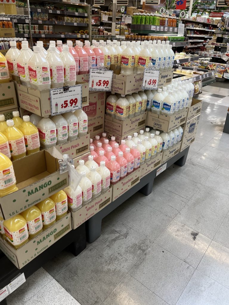 1.5リットルのカルピスなどは約6ドル(810円)。カルピスっておいしいけど、800円も出して飲むもんじゃないんだよなぁ。