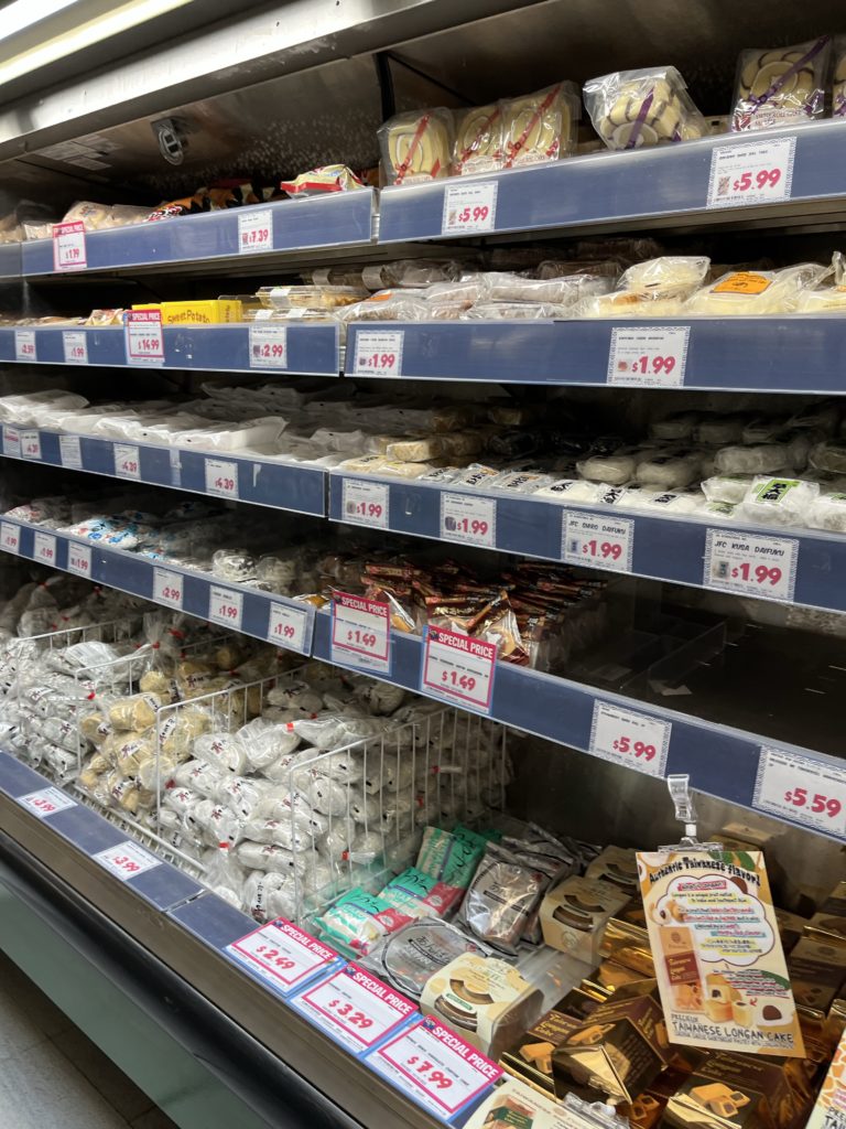 入口で売られていた一口サイズのチョコレートエクレアは4.49ドル(606円)。小さいのが4個入り。ミツワよりは良心的。