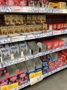 大袋入りのポッキーはセールになって3.49ドル(471円)。買おうかだいぶ悩んでやめてみた。