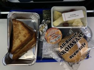目的地到着前に軽食のサービスがあり、"egg or french toast?"と聞かれたので、甘いもの好きの私は迷わずfrench toastを選択。