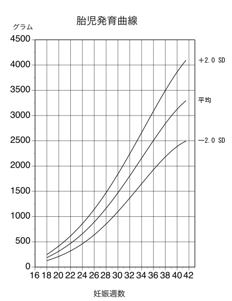 そしてこちらが日本のサイトから拝借した胎児発育曲線。