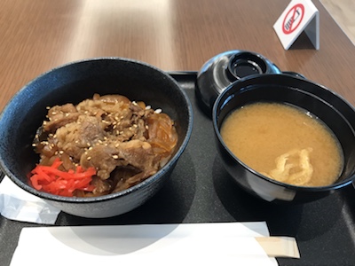 あまりお腹は空いてなかったけど、貧乏性な私は牛丼を注文。おいしかった。