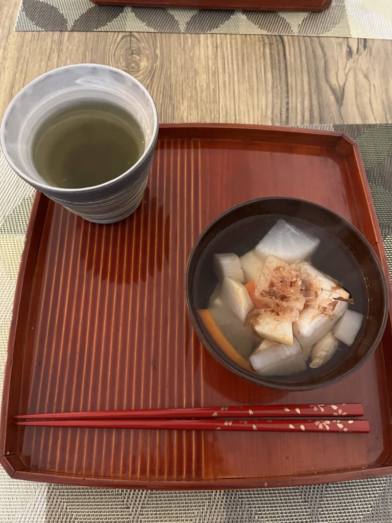 大根とにんじんと里芋と鶏肉入り。日本から持ってきた茅乃舎の出汁が全てをまとめてくれた。優秀。