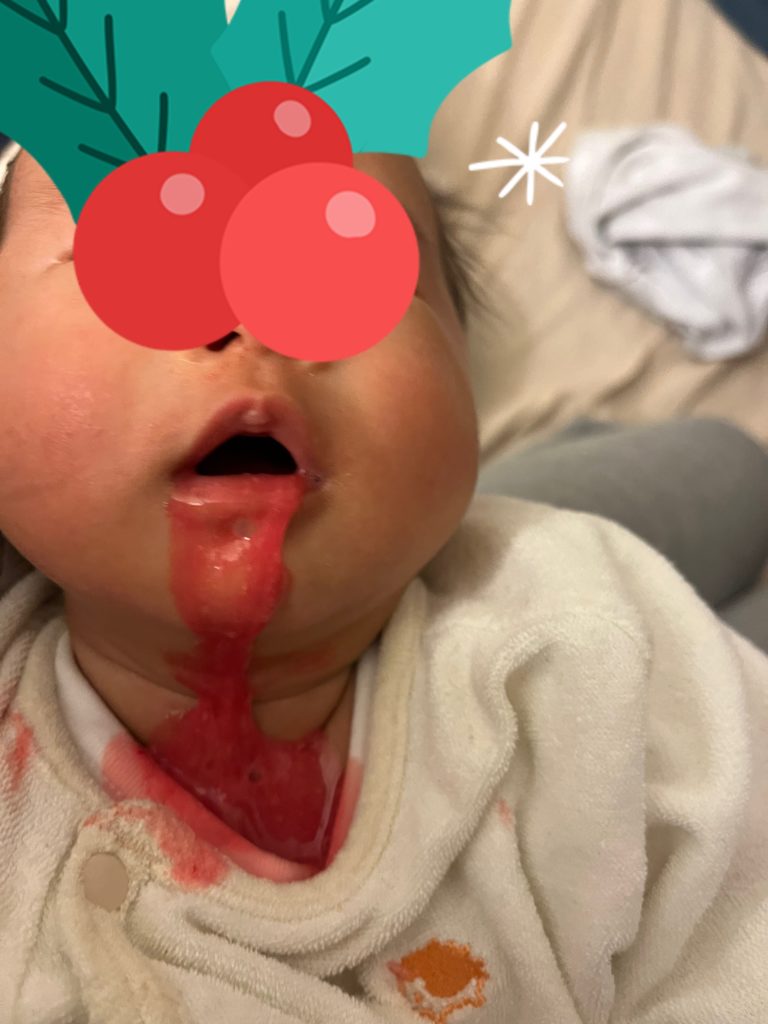 生後6週間の頃、吐血騒ぎでERに行ったということをお送りします。