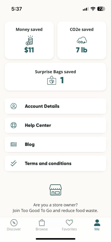 アプリでみると11ドルを節約し、CO2の排出も7ポンド分減らせたらしい。