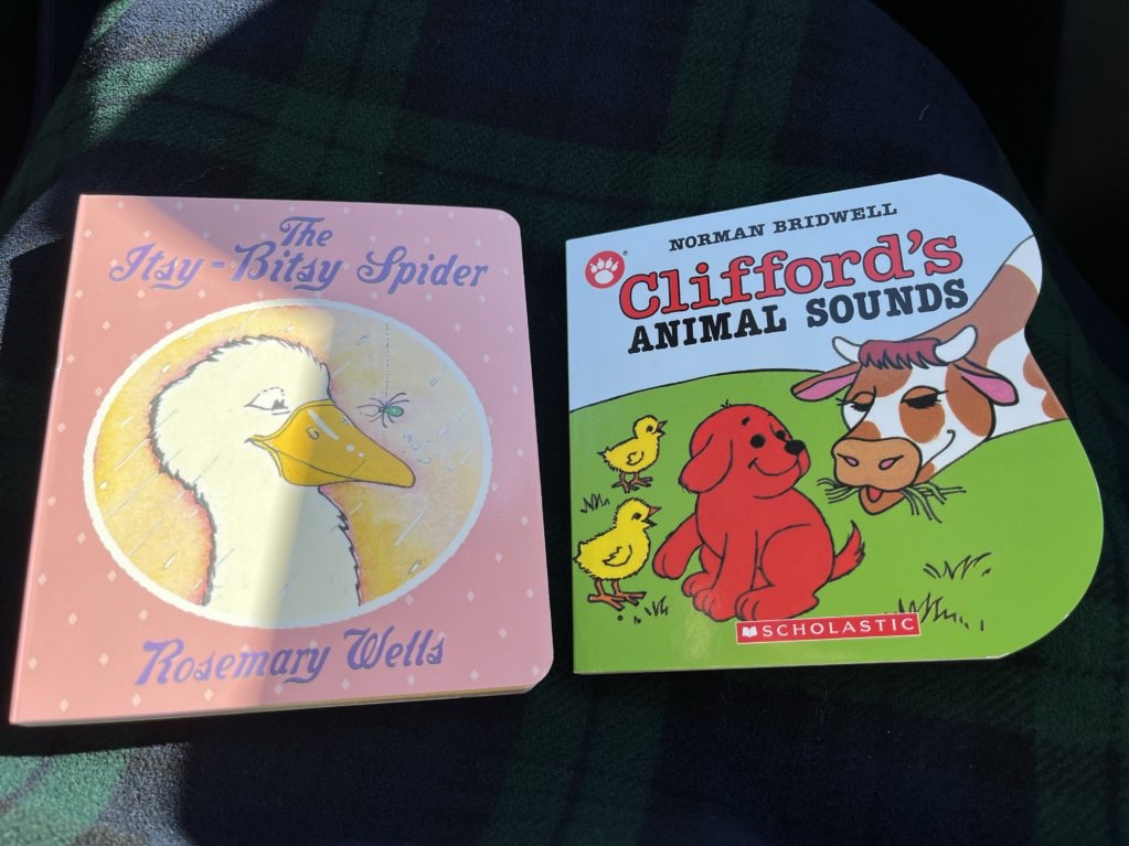 クリフフォードの話の絵本と、くもの話の絵本だった。