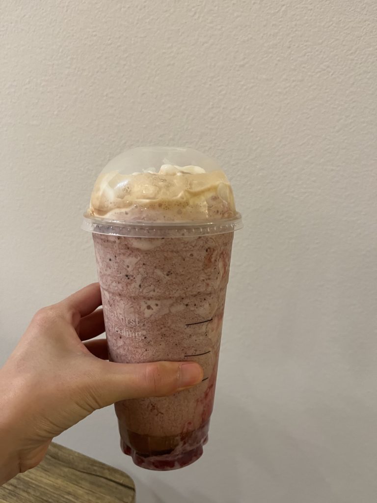 赤子の就寝時間を急いでいたから適当なカスタマイズとなり、なぜかかなりコーヒー感の強いストロベリーフラペチーノになった。