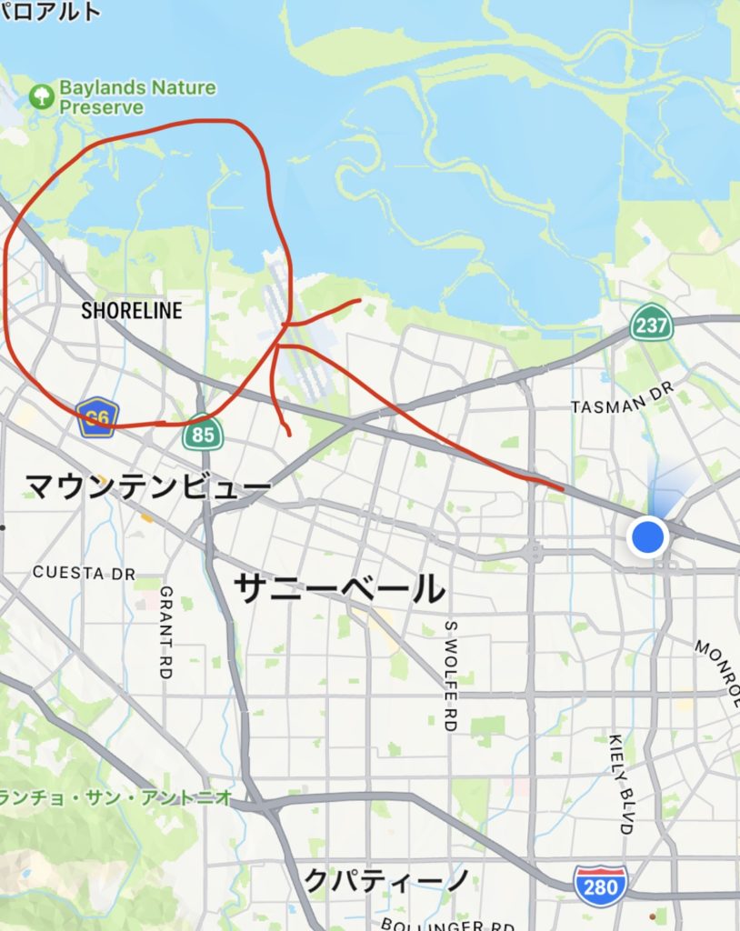 Google本社の近くにあるショアラインを散歩したという日常をお送りします。