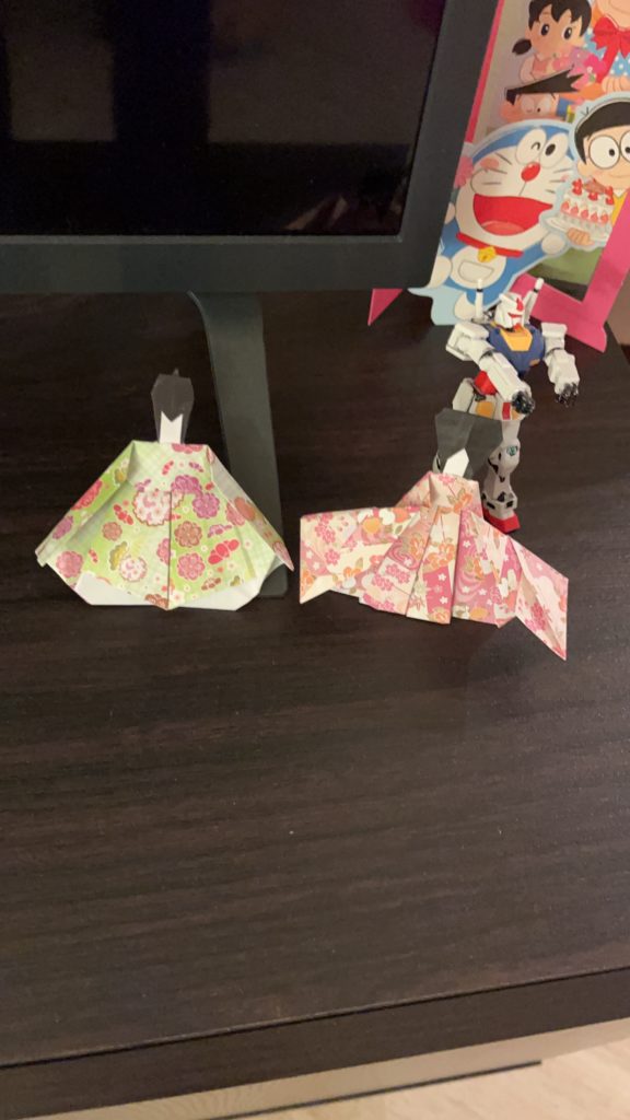 お雛様は折り紙で折ってみた。
