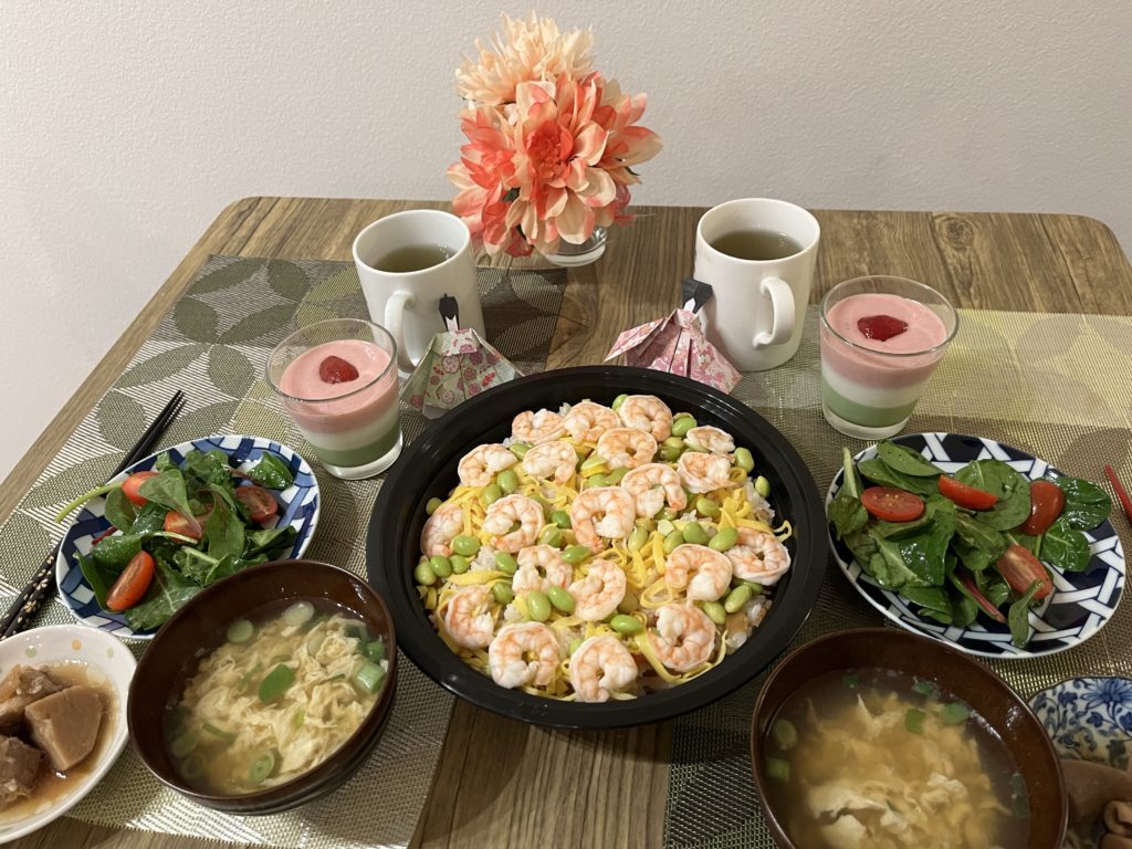 初節句はちらし寿司などを食べるらしい。
