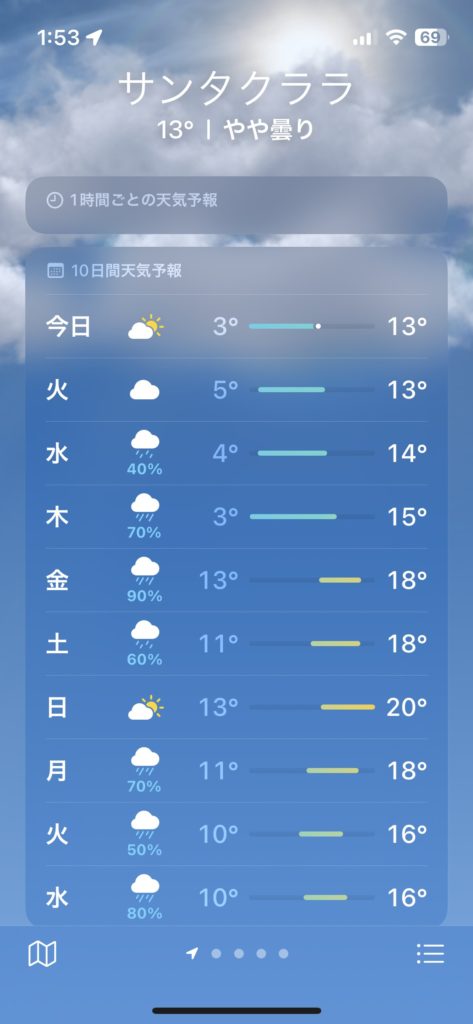 ネタ切れ感があるので、サンタクララの最近の天気をお知らせします。