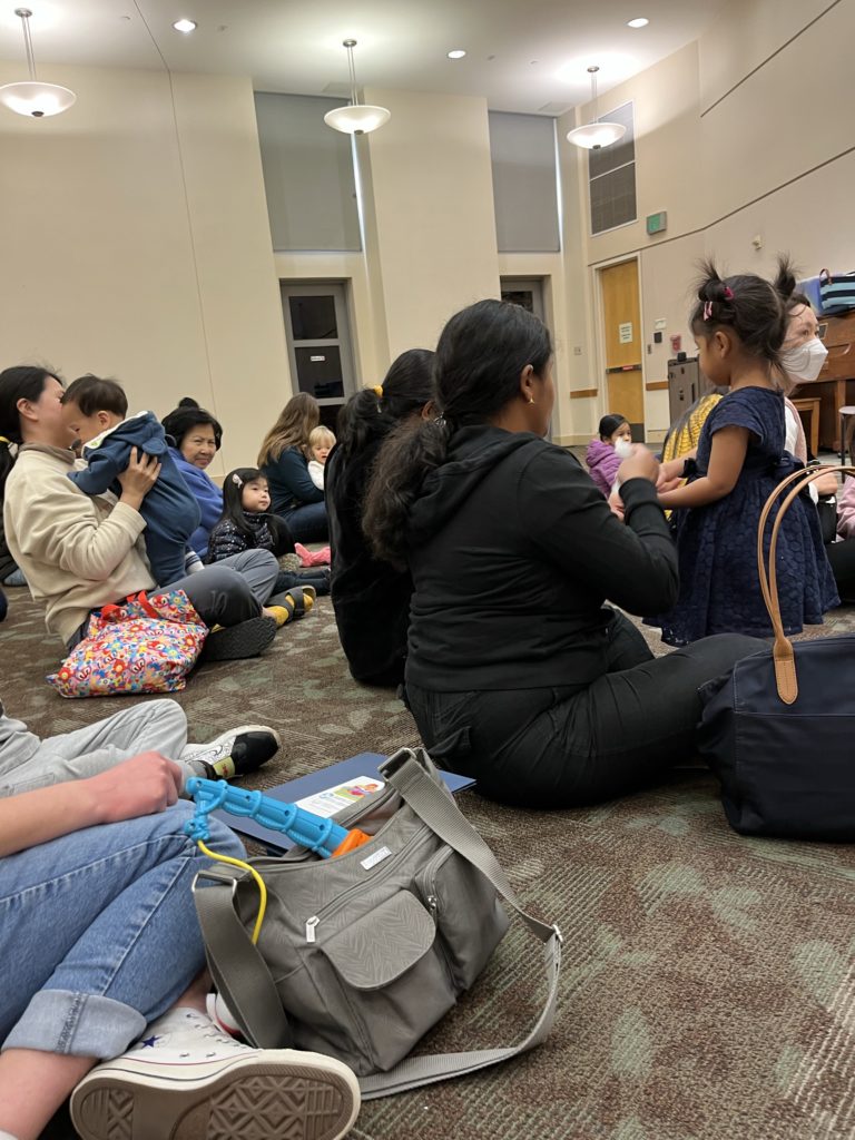 子供同士はまだ交わる歳ではないので、各々親に本を読んでもらったり