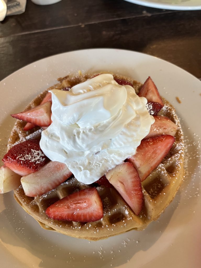 注文したのは、コーヒーとアボカドトーストと、ストロベリーワッフル。