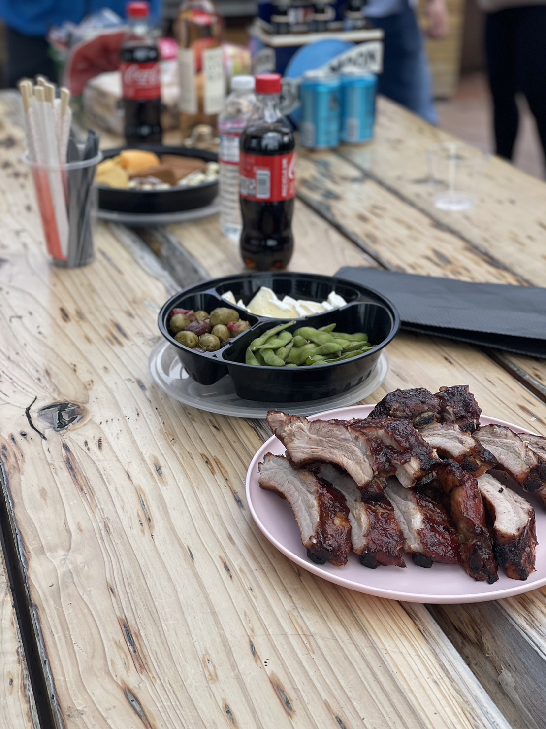 お店は外に食べられるテーブルみたいなのがあるが、テイクアウト専門の様子。