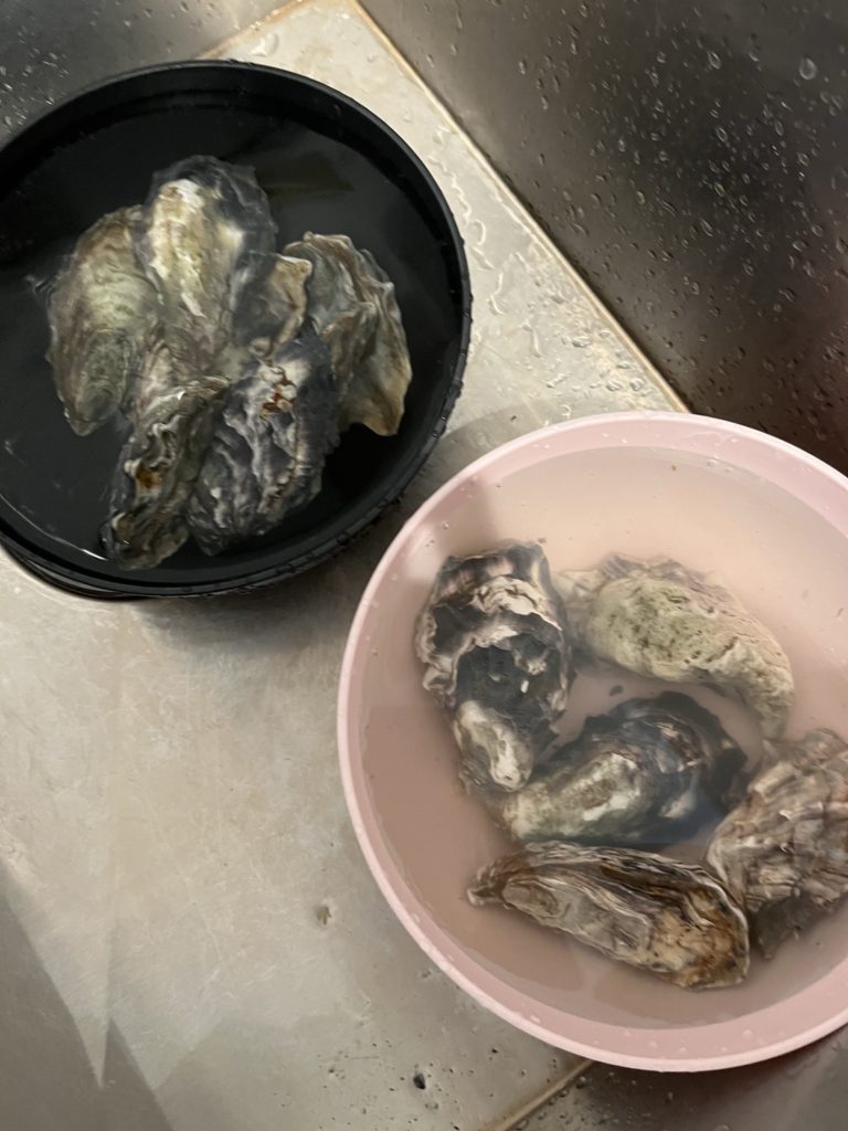 牡蠣の殻をきれいに洗って、ナイフでこじ開ける。