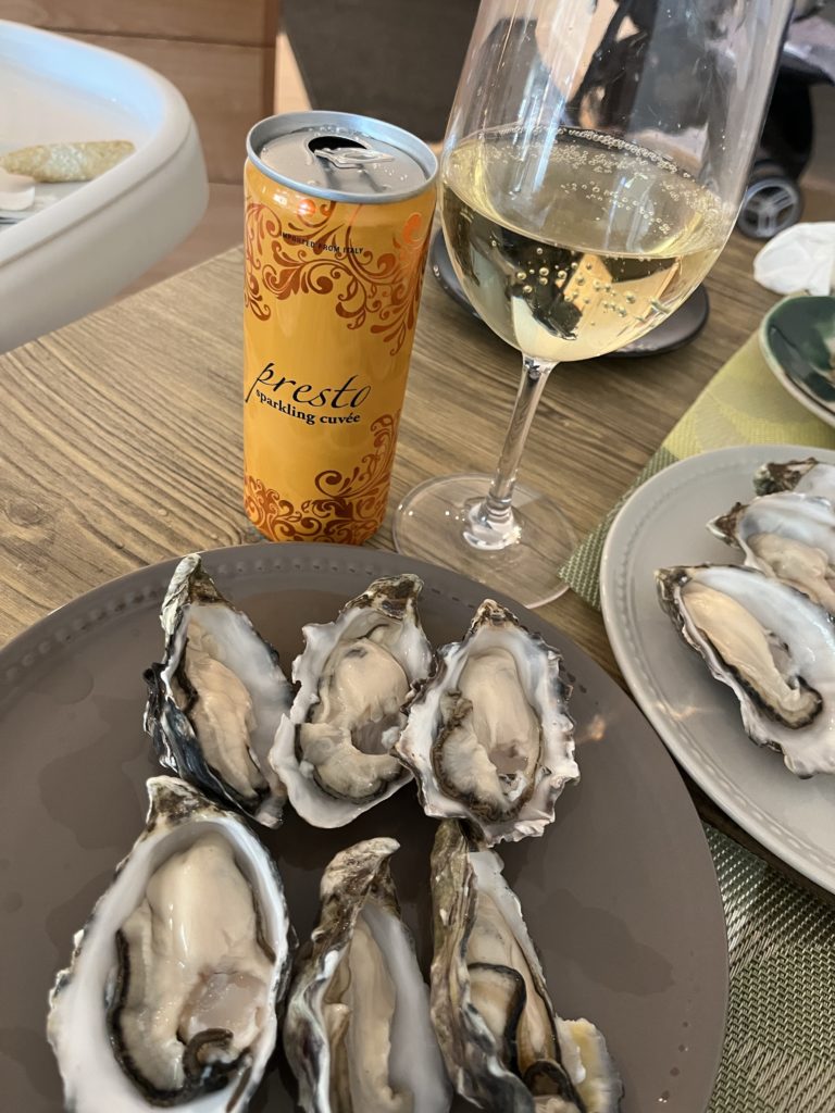 近くのスーパーで1缶5ドルで買ったスパークリングワインも添えての夕飯となった。