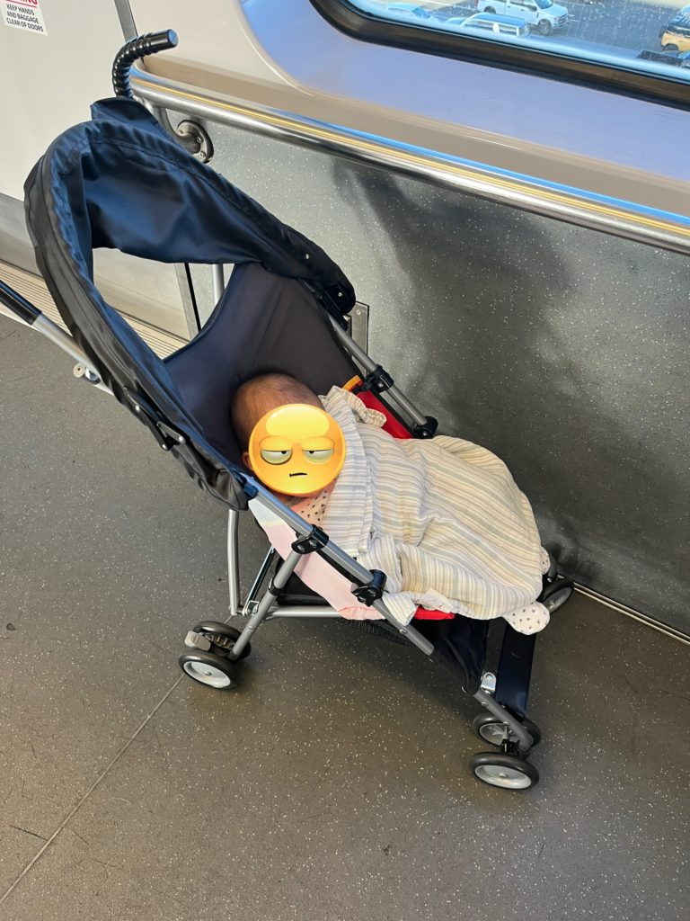 今回、抱っこ紐で乗り切ろうか、ストローラーを持って行こうか悩んだけれど、軽量ストローラーを持っていくことにした。