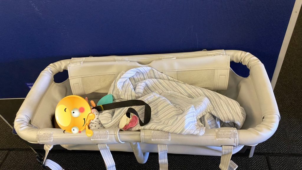 今回は赤子の分の席もとっていたけれど、横になるならバシネットのほうがいいと思い、バシネットを借りることにした。