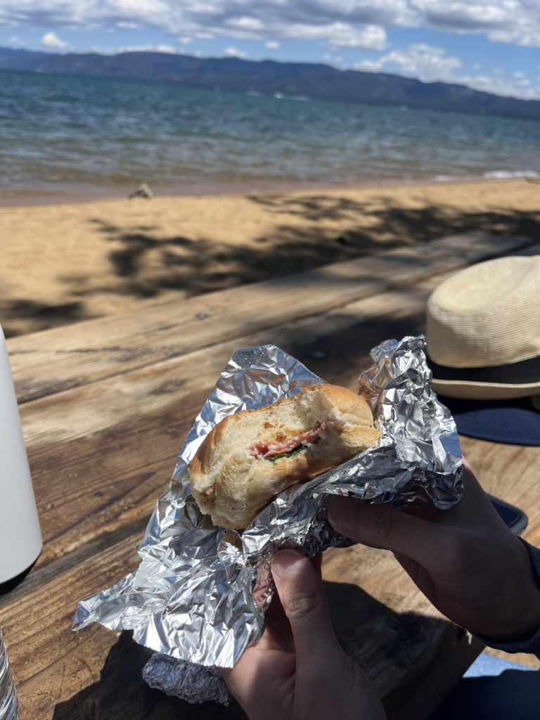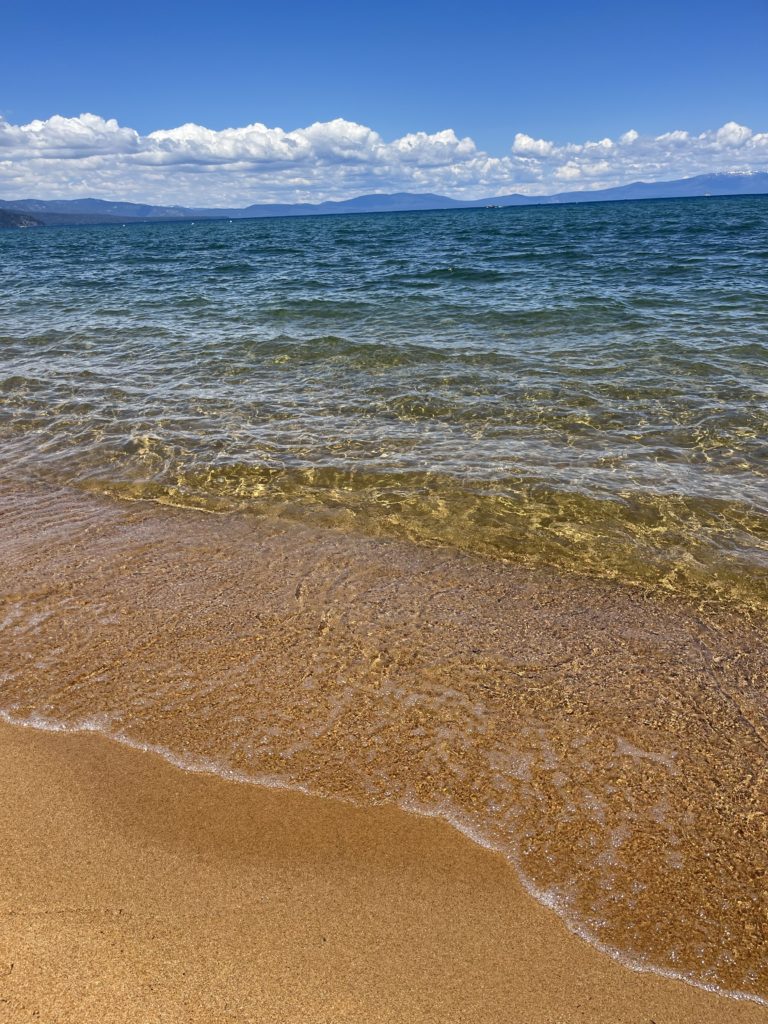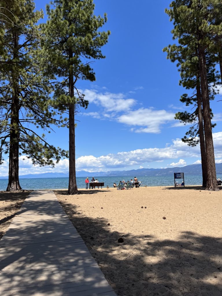タホ湖にはビーチがたくさんあって、どこに行ったらよいのか分からなかったけれどGoogleに聞いてみたら、ここは10ドル駐車料金がかかるけれど、穏やかで良いところという口コミがあったので、このビーチを選んでみた。