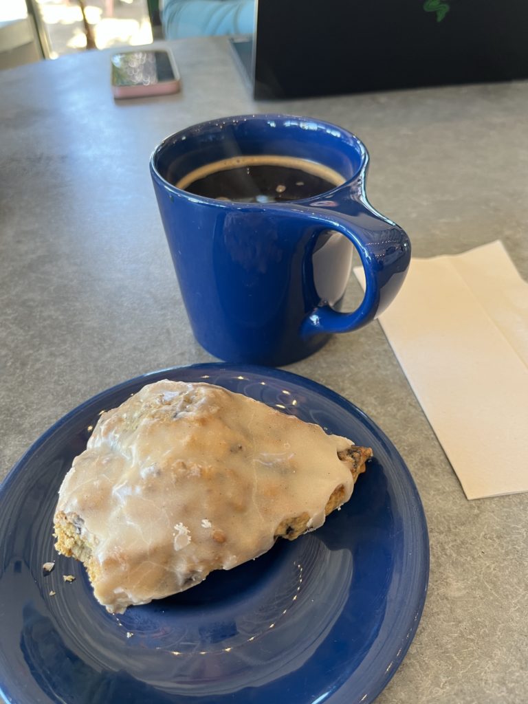 アメリカンコーヒー4.25ドルとブルーベリースコーン4.75ドルを注文。