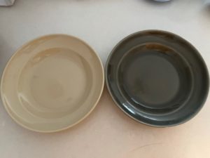 スープ皿。100均のお皿を卒業してカレーやパスタなどを食べる用。定価1枚51ドルが32.64ドル(4406円)。緑の方はB品だったようでさらに8ドル引き33ドルから割引が入って26.4ドル(3564円)。