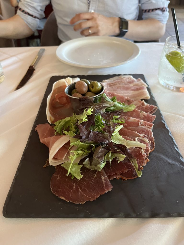 アメリカらしく肉がたくさん載っていてどれも美味しかった。日本で頼む生ハムの盛り合わせの2倍くらいありそうな量だった。