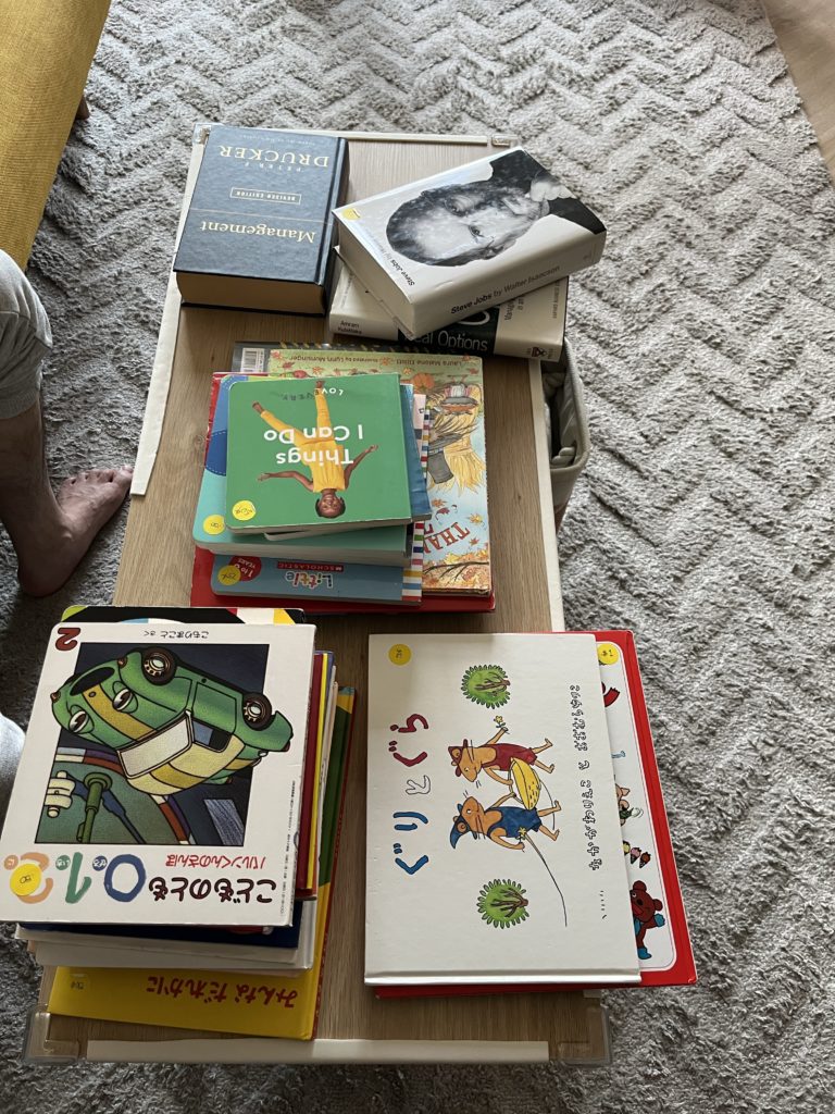 日本語の絵本はこちらの日本人間の売買サイトでも売れたりするし、無料の交換会もあるので、赤子が飽きたらそこで処分して、