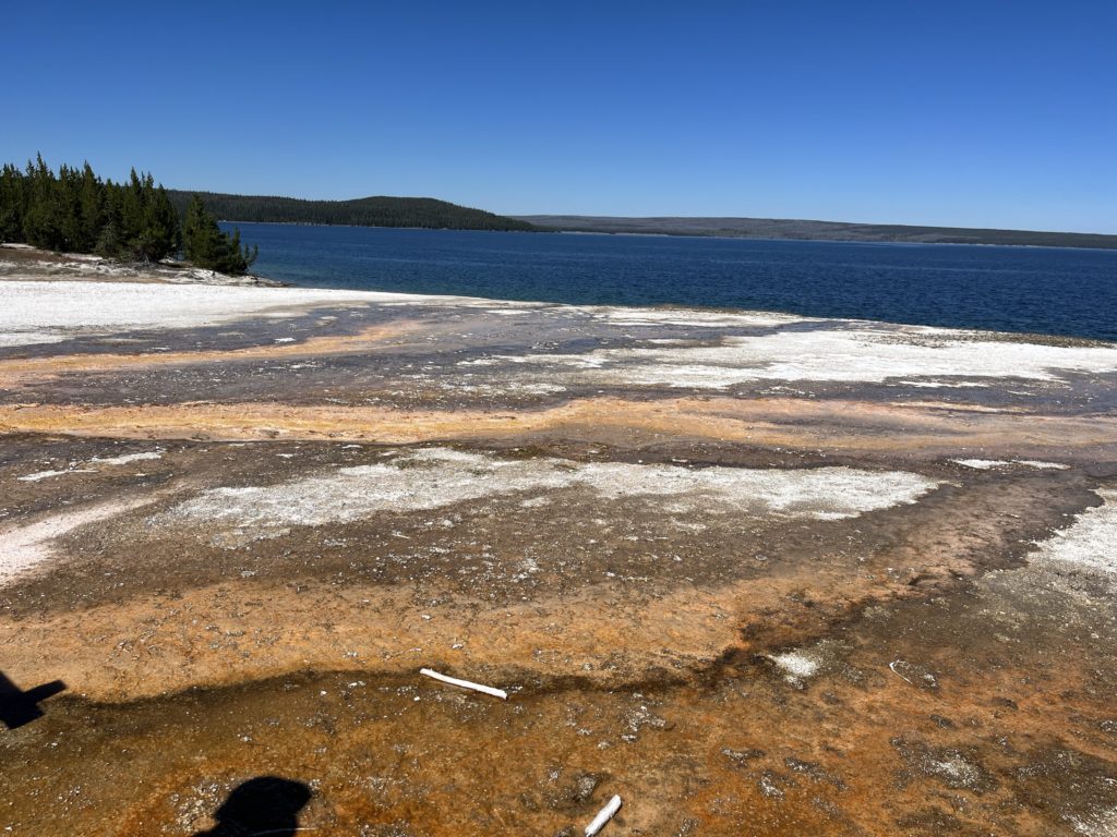 ここはイエローストーンレイクという湖のほとりにあるポイントで、温泉と湖双方が楽しめる。