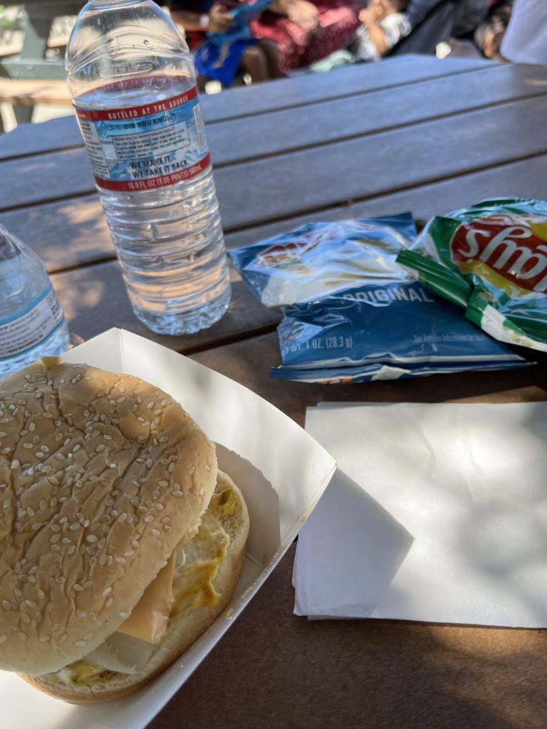 我々はハンバーガーを選択。なぜかよく分からないけどハンバーガーをもらうのに20分くらい並んだ。