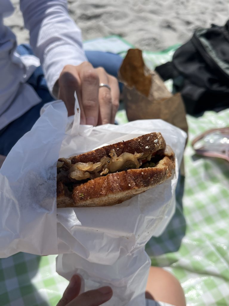 アメリカのサンドイッチにしては珍しく、半分の量で半分の値段でいいのにというのを叶える常識的な量のサンドイッチで2個を2人でおいしく完食した。味もかなり美味しかった。満足。