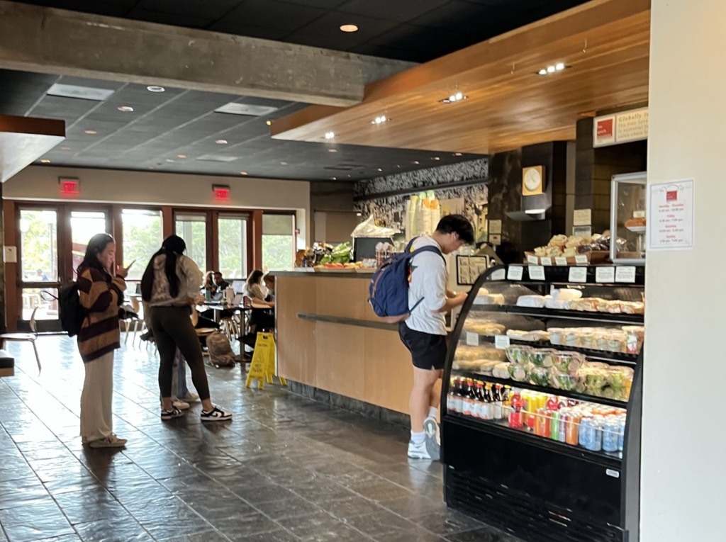 バークレーのダウンタウンに面している入口の近くには大学のショップがあり、大学のロゴグッズが買える。博士太郎さんはここで日本のご家族へのお土産を購入。