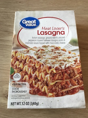 それでもたまには楽をしたいという気持ちから、ウォルマートで冷凍のラザニアを購入していた。