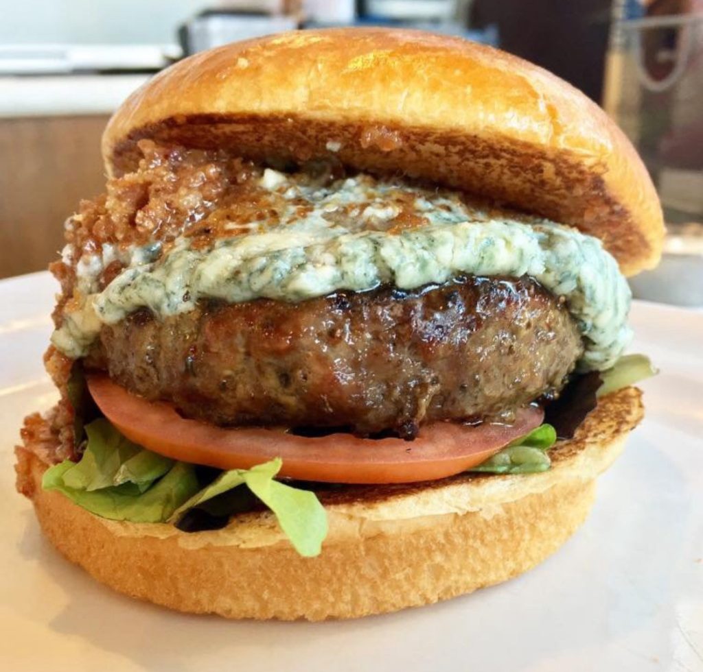 博士太郎氏はビーフとブルーチーズの入ったバーガーを注文。
