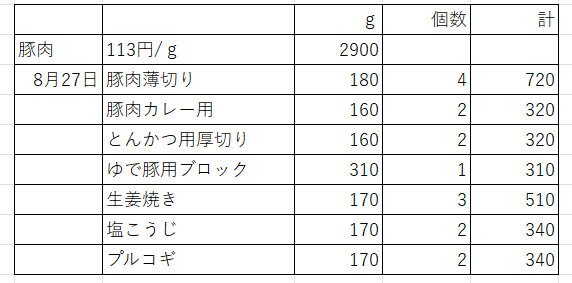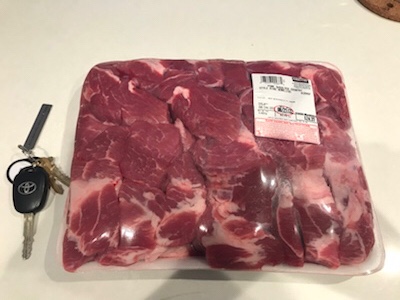 仕入れたのは、豚肉はPork Shouder(豚肩ブロック) 。約113円/100g。