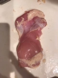 アメリカの鶏もも肉の脂はけっこう多い。そしてこれがけっこう臭みのもとになる。