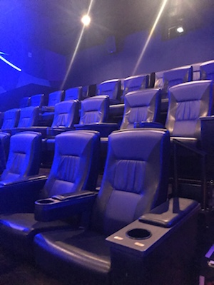 中はこんな感じ。椅子は日本よりだいぶ大きくゆとりがある。大柄なアメリカ人でもゆったり見れるだろう。